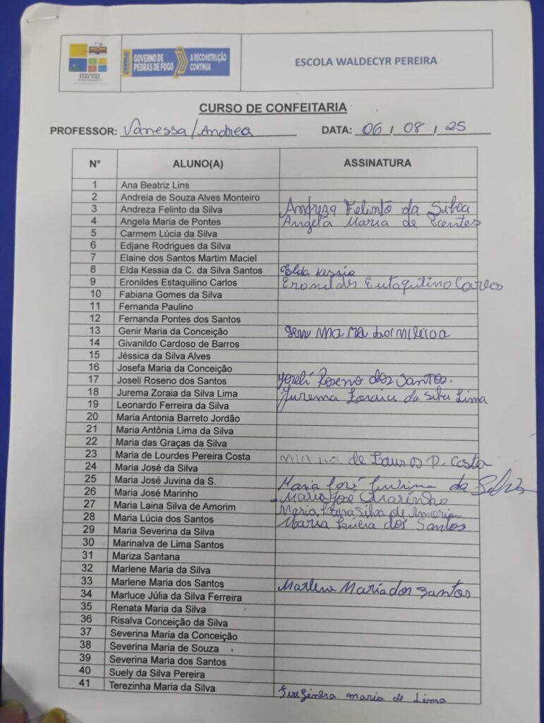 Pedras de Fogo – Confeitaria – Waldecyr - Atas FREQUÊNCIA ESCOLA WALDECYR PEREIRA – CONFEITARIA 29/10 Porinstitutoabba21.com.br 8 de novembro de 2025